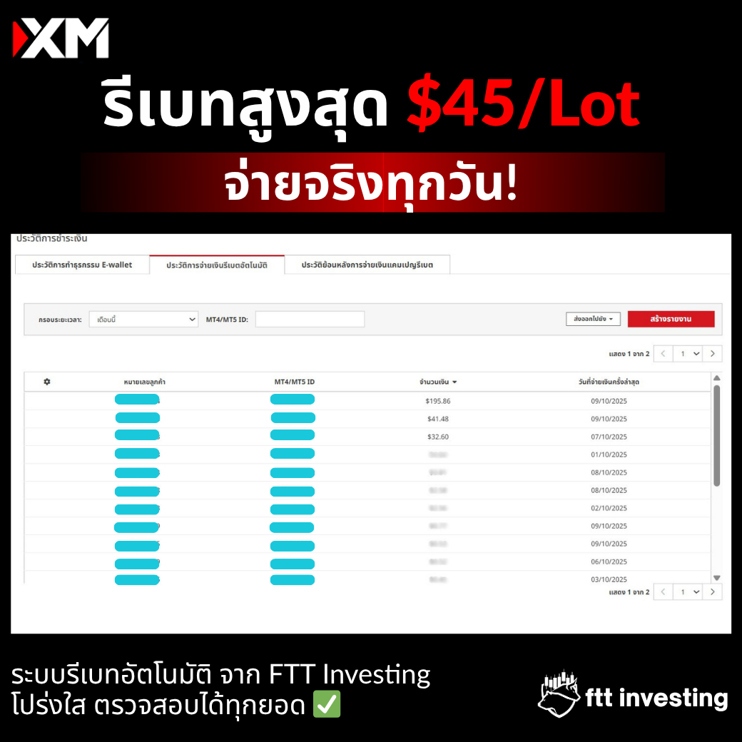 🔥 เทรดกับ XM รับรีเบตสูงสุดถึง $45 ต่อ Lot!